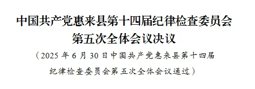 中国共产党惠来县第十四届纪律检查委员会第五次全体会议,于2025年6月30日在县城举行。出席这次全会的有县纪委委员22人,列席73人。